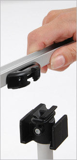 • Banner graphics securely clip to the top of, bottom of or anywhere in between on the banner stand pole